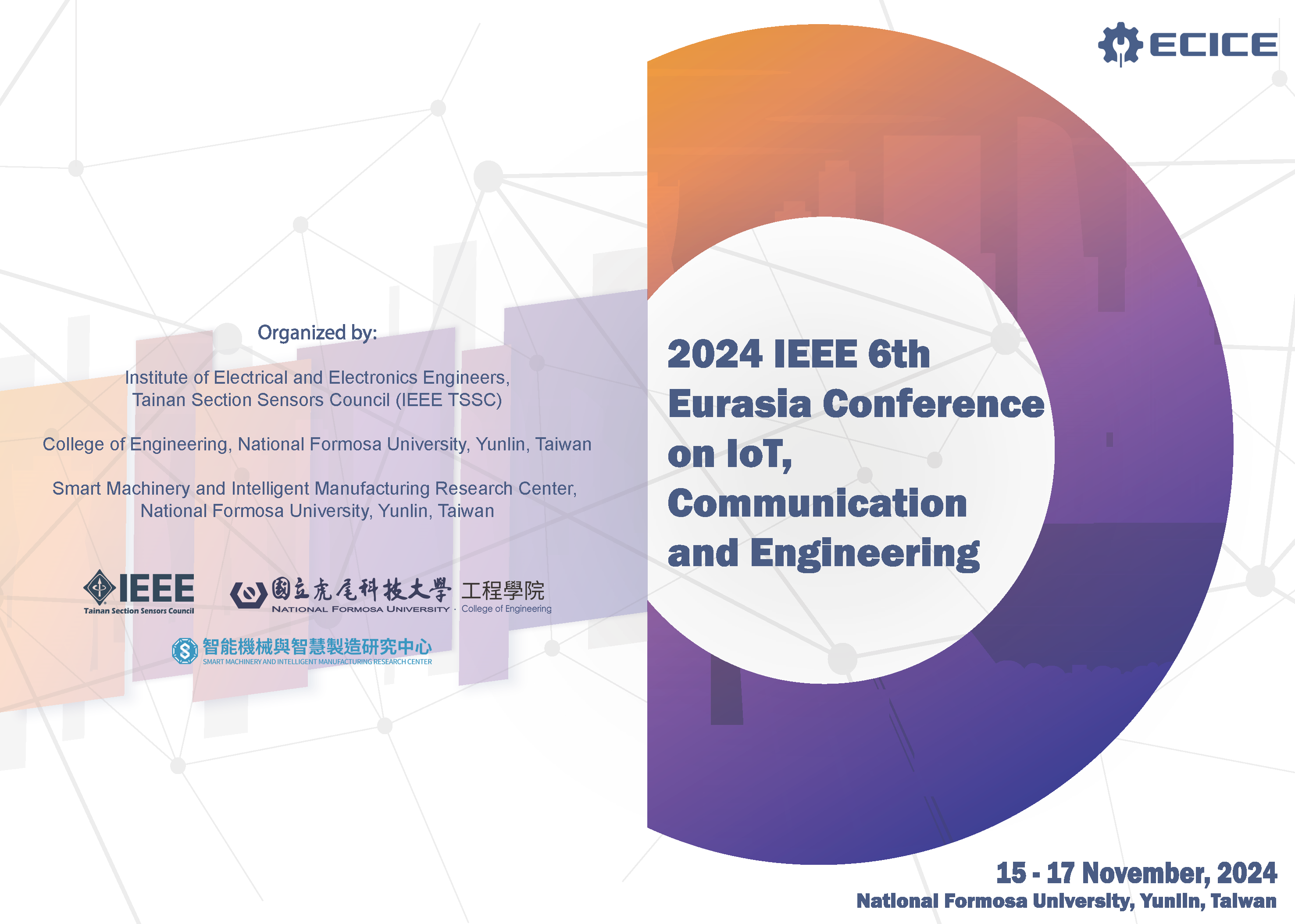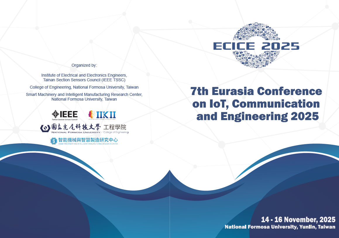 8th Eurasia Conference on IoT, Communication and Engineering 2026(ECICE 2026) will be held in Janfusun resort Hotel,Yunlin, Taiwan on 13-15 November 2026, and it will provide a unified communication platform for researchers with IoT and Advanced Manufacturing topics. The booming economic development in Asia, particularly the leading manufacturing industries from auto-mobile, machinery, computer, communication, consumer product, flat panel display to semiconductor and micro/nano areas have attracted intense attention among universities, research institutions and many industrial corporations. This conference aims to provide a broad international forum for world researchers, engineers, and professionals working in the areas of IOT and manufacturing to discuss and exchange various scientific, technical and management aspects across the wide spectrum of the society. The theme of the conference is set as smart manufacturing, focusing on new and emerging technologies. Papers with innovative idea or research results in all aspects of advanced manufacture are encouraged to submit. This conference is must attentive towards strong interactions among researchers disseminating their high-quality research results.